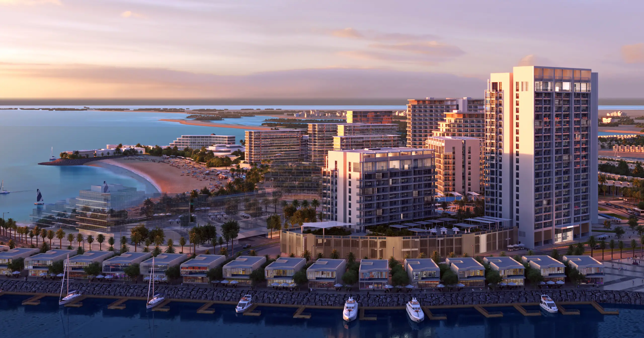Mina Al Arab distinguishes itself with its immersive connection to nature, offering residents tranquil living surrounded by preserved mangroves, lush wetlands, and serene lagoons. Its eco-conscious design, pedestrian-friendly promenades, and commitment to sustainability create a peaceful sanctuary rarely found in the region. The community’s varied waterfront properties, from contemporary apartments to exclusive villas, appeal to those seeking a true coastal retreat with a strong emphasis on green space and harmonious living.